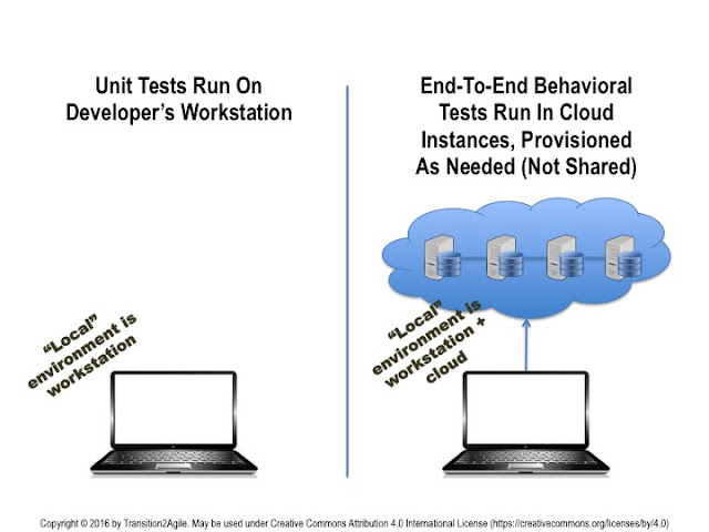 The practice of Test-Driven Development (TDD) is deeply entrenched in Agile culture. Teams that practice it are often viewed as advanced, whereas teams that do not are considered by many in the Agile community to be less advanced. Alas, TDD has come under fire, and there are many people who feel that it is not the best approach for everyone in all cases. Regardless of that, it turns out that DevOps does not need TDD for an effective pipeline. What DevOps needs is Behavior-Driven Development (BDD).Loosely speaking, BDD consists of defining tests from a user perspective. Thus, tests are "end-to-end" because they are defined in terms of the behavior of the system - not the behavior of system components or even more granular "units". Historically it has been difficult to implement a BDD approach because one needs to assemble the entire system as an integrated unit to perform the tests. However, virtualization - the technology that has enabled cloud computing and DevOps - makes it possible - even easy - to create local instances of system components, so that one can assemble an integrated system very early. That makes BDD possible. Thus, one can use a test-first approach in which tests are defined at a behavior level, instead of a very granular unit level, as is the case with TDD.